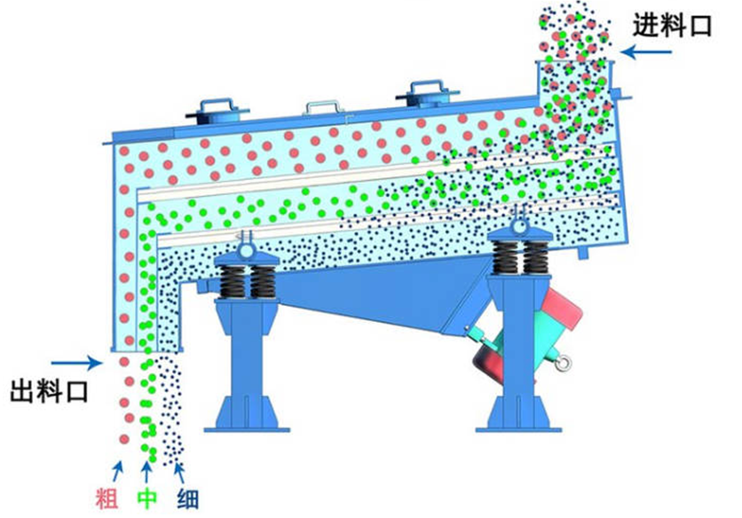 直線振動篩:結構以篩箱為主體,內(nèi)置單層或多層篩網(wǎng)。其核心動力來自兩臺同步反向旋轉(zhuǎn)的振動電機,產(chǎn)生直線激振力。設備通過減振彈簧支撐于底座,以隔離振動。結構堅固,適合大產(chǎn)量連續(xù)作業(yè)。