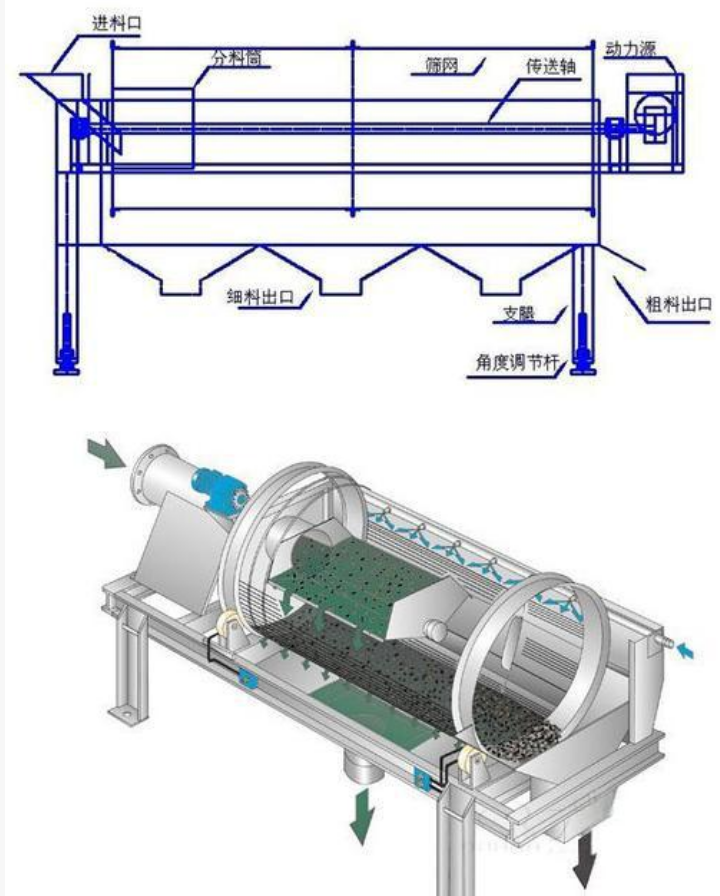 滾筒篩砂機(jī)簡(jiǎn)稱滾筒篩,是分選技術(shù)上應(yīng)用廣泛的一種振動(dòng)篩設(shè)備,它克服了圓振動(dòng)篩和直線篩在篩分較濕物料時(shí)出現(xiàn)的篩網(wǎng)堵塞問(wèn)題,提高了篩分系統(tǒng)的產(chǎn)量和可靠性。